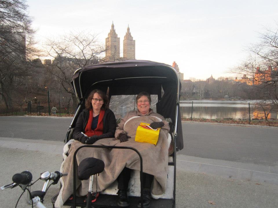 It was not until Megan went to college in Vermont in 1998 that we started to again visit Connecticut fairly regularly. Just as West Haven had been my haven in 1970, Megan sometimes spent weekends at Uncle Pennell and Aunt Margaret’s house in Woodbridge. She could take the train from Brattleboro, Vermont, and her uncle would pick her up at the train station in New Haven. When Megan moved to Seattle and then to Taiwan, Woodbridge became a meeting spot for the holidays. We would put Grandma in the car and Harold and I would drive down to Connecticut (Wally and I in the back seat quite put out because Grandma got to ride up front.) Megan would fly into Kennedy airport and then take either the train to New Haven after first spending a day or two on her own in the city or else she would come directly from the airport via the infamous “Connecticut limousine”. We had some good holidays in Connecticut. One memorable Christmas Megan and I took the train into the city and spent the day doing New York sort of things, like having tea and expensive champagne at the Russian Tea Room and taking a rickshaw ride through Central Park.