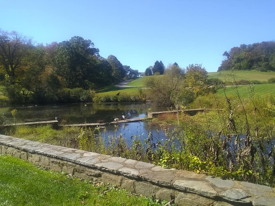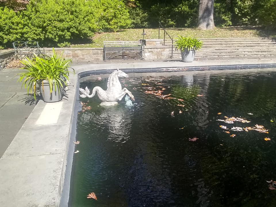I remembered that for many years my father-in-law would order his Christmas presents for the women in the family from a catalogue published by a place called WInterthur, the ancestral home of the DuPont family located outside Wilmington. I knew Winterthur had a museum, a historic home, and some gardens. Once I started my research I realized that even at the end of October the gardens would be spectacular. Winterthur has manicured displayed gardens, but also acres of natural areas, meadows with cattle grazing, ponds, trails, and wonderful diversions of all sorts. https://www.winterthur.org/ I found a lovely chain hotel with good COVID policies on the river in downtown Wilmington and they accepted pets. Wally and I stayed there two nights and spent the intervening day touring the grounds. Winterthur was named after a Swiss village of the same name and the complex has a decidedly European/English country garden feel to it. The museum, which of course was closed due to health policy restrictions, was the inspiration for many of the pieces of jewelry and garden sculpture that my father-in-law purchased as Christmas presents. Below are some pictures of WInterthur in the autumn.