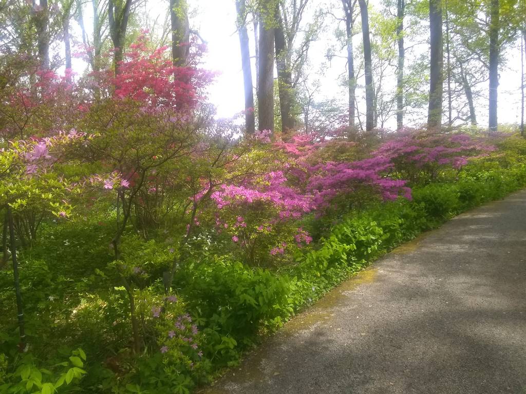 Two years later, in May of 2022, I was delighted when my friend Sheri flew to Charleston to accompany me on my return trip to Bangor. It was my first road trip without my buddy Wally. I had lost him that spring at age thirteen and one-half. I always thought the old curmudgeon would live to be 17 or 18, as Scotties sometimes do. I gave Sheri some options about interesting sites we could visit on our way north, and she chose WInterthur. I therefore received the chance to see the gardens in the spring and as I expected they were quite different from the fall gardens. There was a great deal of spring color, including a blooming redbud which we made sure to photograph as evidenced by the picture at the top of the page.