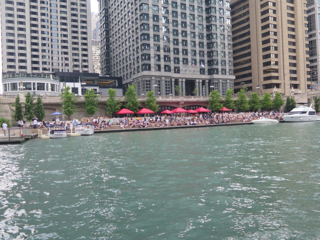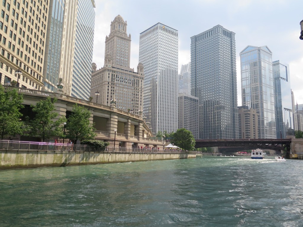 My second trip to Chicago was another work trip, many years later in the middle of the first decade of the 21st century. This conference was in July and Harold’s excuse was he would sooner starve to death than endure Chicago in the July heat. He was wrong. Turns out the weather was delightful that week with a strong breeze blowing off Lake Michigan every day. I took an architectural tour of the city on a riverboat, one of the most worthwhile and educational tours I have ever taken. I took the same tour when I visited Chicago in 2019 and the guide was the worst I ever had, so maybe it had been the luck of draw. Whether you get a lousy guide or a superlative one, viewing the Chicago skyline from the river is a wonderful experience. Chicago, like San Antonio, has a “riverwalk” with cafes and shops along the riverbank. The apocryphal story told by the first guide was that Mayor Daley had visited San Antonio, enjoyed the riverwalk, and came home and told the city fathers they had to build one in Chicago. In any event the Chicago River is a delightful place to stroll or cruise.