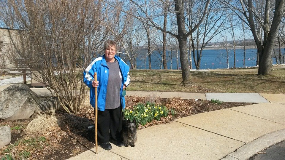 Well what else did Missouri show me beside frozen custard? After our visit in Independence, Harold and I moved on to spend a few days in Branson. Harold wanted to head south, and Branson is down by the Ozarks and he hoped to avoid unpleasant weather and rest up for a few days before heading up to Maine. We did not think much of Branson, it is a honky tonk sort of tourist mecca. But we did find a lovely lake outside of town, Table Rock Lake. The daffodils were blooming. There were trails along the lake and we spent a pleasant afternoon there. Even Branson created a good memory for me, a lovely day with beautiful spring weather. Wally enjoyed the day too.