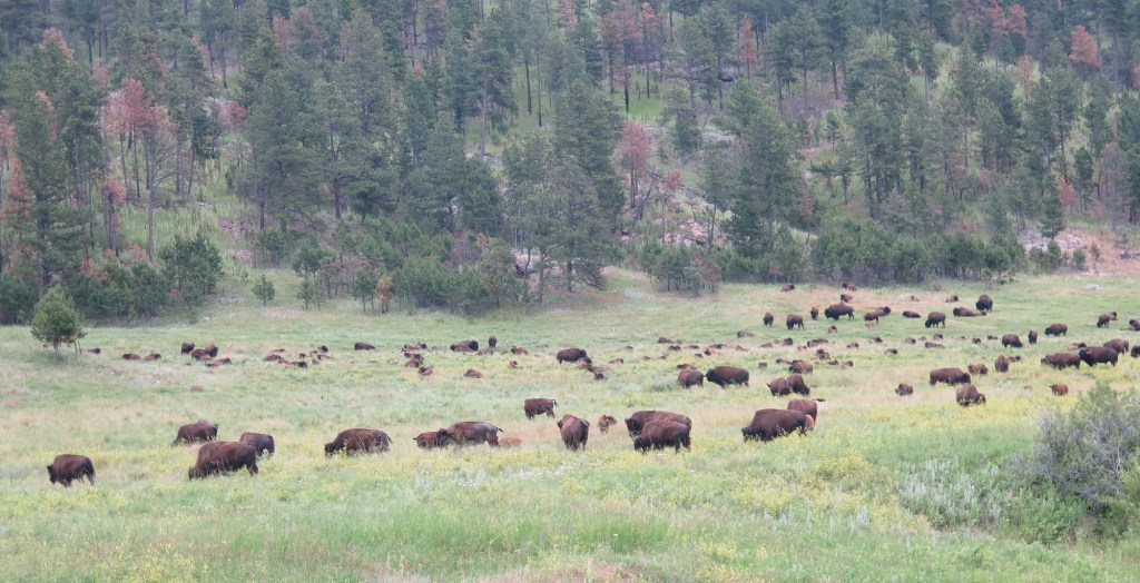In addition to the Crazy Horse Memorial, we also found a plethora of bison in the state parks and national parks that are located in the area. Custer State Park has a huge herd of bison, a very small portion of which is pictured below. https://gfp.sd.gov/parks/detail/custer-state-park/ There are also a number of national parks in South Dakota, perhaps the most famous being Badlands National Park which we did not have an opportunity to explore because of time constraints. However we did visit both Wind Cave National Park (more bison) and Jewel Cave National Park. I admit that I got a little nervous in the cave at Jewel but both of the parks were worth the time we spent there. The bison below are at Custer State Park and the frightened old lady is me in the cave at Jewel.