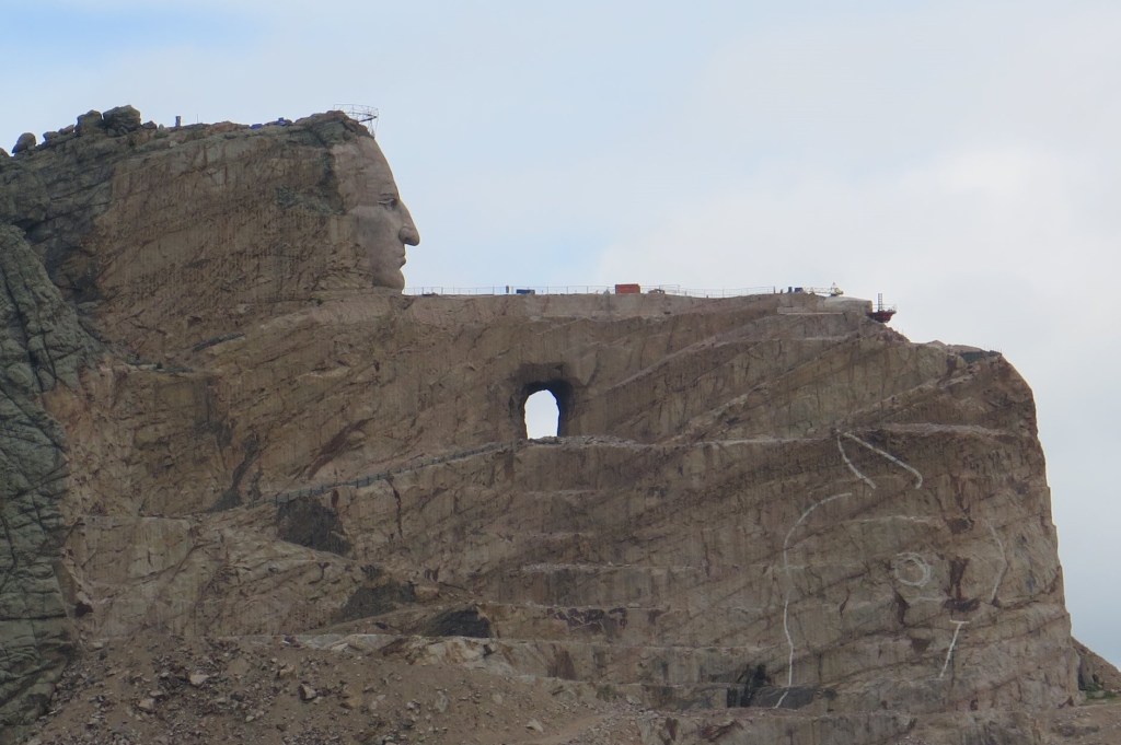 Just because Mt. Rushmore and Wall Drug were a disappointment, it does not mean that I do not have fond memories of South Dakota. Megan and I had a good time in the Rapid CIty area and most of that occurred because of a bit of serendipity. My cousin from California told me about a wonderful Nepalese restaurant in downtown Rapid City. We had a great dinner there and Megan said the lassi she had with her dinner was the best she ever had and it was a drink she often had in Malaysia and Singapore. Lassi is an Indian yogurt–based beverage with a smoothie-like consistency. A surprise indeed to find such a concoction in Rapid City. We also came upon the Crazy Horse Memorial on the Black Hills roads in the vicinity of Mt. Rushmore. Neither of us had heard of this complex and we believed it to be a hidden gem. The monument of Crazy Horse, carved into the side of the mountain is far from completed, but there is an interesting museum and an area where there are lectures, dances, and other cultural activities. We attended a lecture about Lakota history and learned that the word Sioux is not a word from the languages of the plains tribes such as Lakota, Hidatsu, and other tribes which are now often referred to as Sioux. The word came from the language of the Ojibwe or other tribes in the Great Lakes region and refers to “enemies of the people” which is the descriptor that was given to French trappers when they were asked who the people were who lived on plains. The pictures below depict our time at the Crazy Horse Memorial, including the current state of construction and a model of the completed monument.