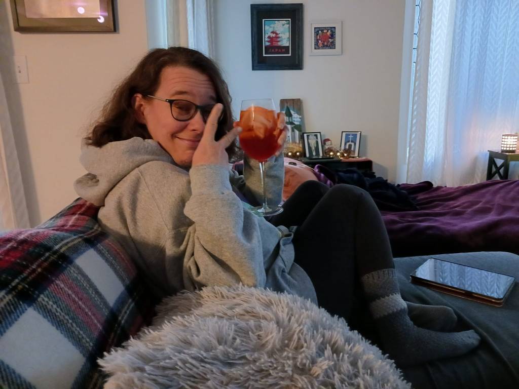 My husband and I made many trips to Seattle between 2002 and 2013 when our daughter lived there. She moved away for nine years but has recently ended her days as an expat and again taken up residence in the Seattle area. I expect to take many more trips to Washington as I enjoy visiting her. Perhaps when I retire from traveling, I will even take up residence in the State of Washington. I hope that day is still a few years in the future. In the meantime I intend to make great use of the direct Alaska Airlines flight between Charleston, S.C. (my current winter abode) and Seattle. In 2022 Megan bought a condo in the Queen Anne neighborhood of Seattle. She lives in a very nice area and I have visited a number of times. Below is a picture of Megan enjoying an adult beverage while sitting on the couch in her condo.